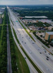 290 Corridor, looking westbound towards Waller, runs adjacent to Union Pacific railroad track